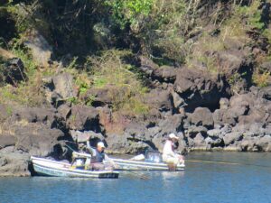 今日は北西風~ベタ凪~東風と回っていましたが、石切は比較的穏やかな湖面でした。