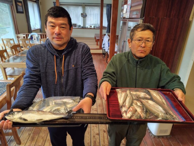 ヒメマスはブイ釣りの皆さんは雨と寒さで午前中のうちに早上がりされ0~7匹、トローリングで最高20匹(13時半上がり)の釣果でした。