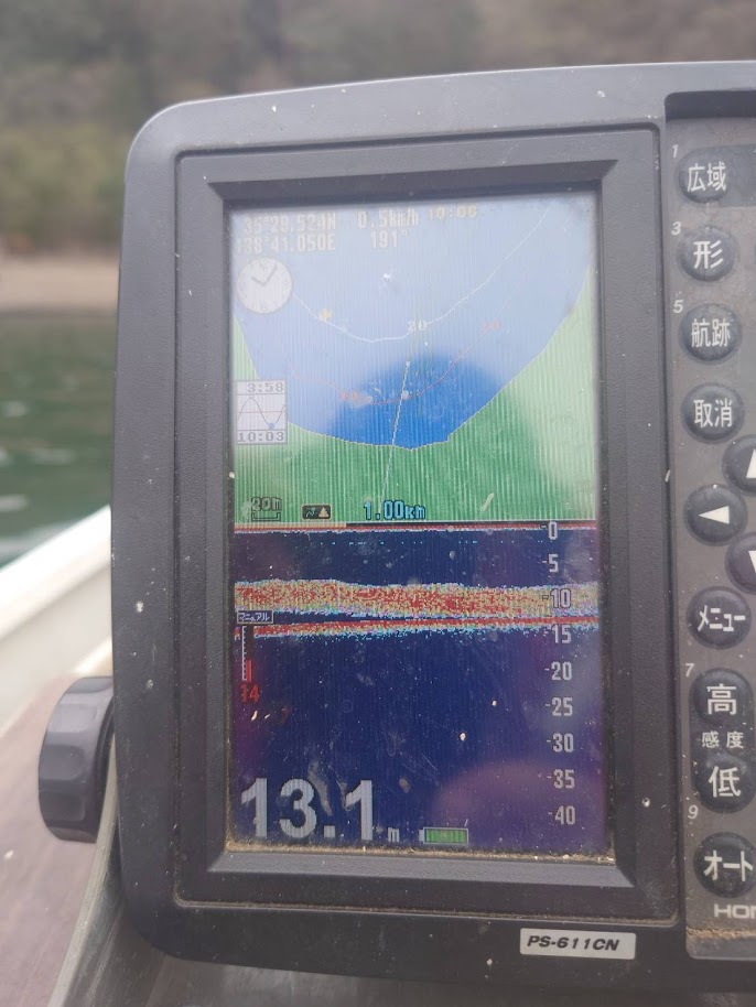 今日トローリングのお客さんが当店前のワカサギポイントを通ったところ、13m底にワカサギの濃い群れが入っていたそうです。今シーズンワカサギが不調ですが、ようやく浅棚にも入って来た感じなのでこれからに期待しましょう。