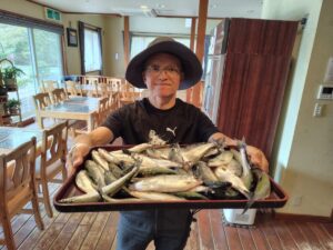 ヒメマスはブイ釣りで0~21匹、お一人トローリングで10時までに制限達成されました。棚は10m前後が◎です。