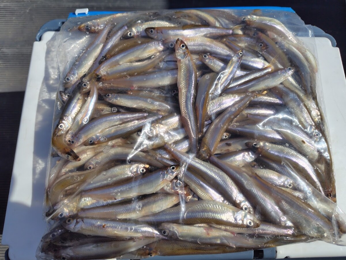 ワカサギは朝から釣行された方が130匹(棚14.5m底)の釣果で、9時頃までは良かったですが、その後は群れが出たり入ったりだったそうです。